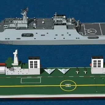 根据中船708所公众号报道和之前的公开招标公告来看,中国海警的“无人航母”不仅可以搭载多种型号的无人机、有人驾驶直升机,还可以在坞舱内携带11米/20米级无人艇和无人潜航器,以及适合在南海岛礁运用的新型喷水推进舰艇。该母舰在不接受补给的情况下,可以在任务海域持续巡航40天,整体续航力不低于5000海里。(图1、图2、图3、图4)